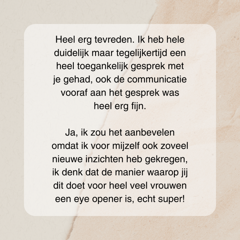 Let op: in de toekomst ga ik langere begeleidingstrajecten aanbieden. Ik geloof dat dit de beste resultaten oplevert. Maar dit gesprek is bedoeld om je een zetje te geven voor de eerste stap naar een betere versie van jezelf!